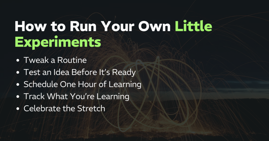 That’s what little experiments are for. They’ve become a core part of how I navigate change, challenge my assumptions, and keep learning, especially when the path ahead isn’t perfectly clear.